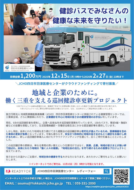 この度、JCHO(ジェイコー)四日市羽津医療センターでは企業や地域の皆さまの健康を守るため